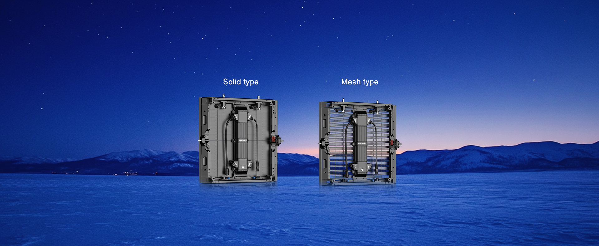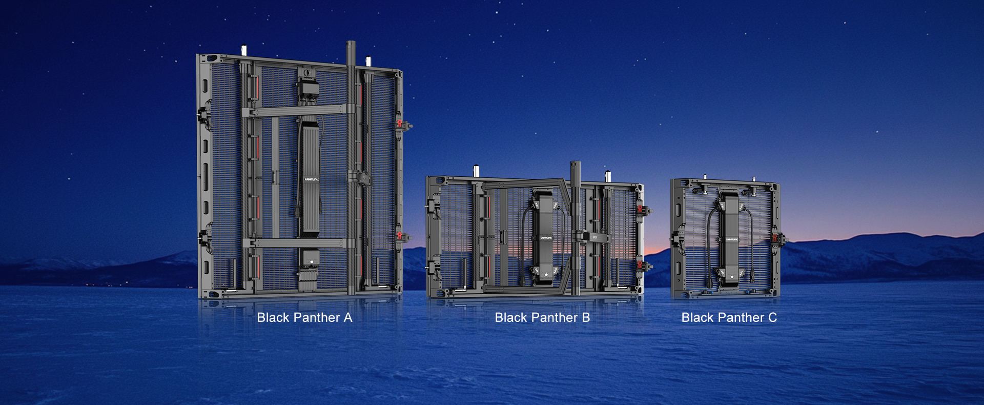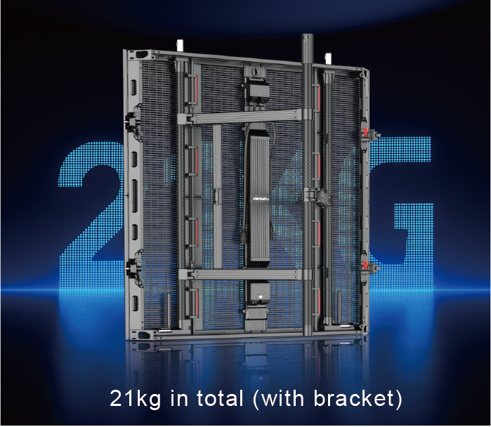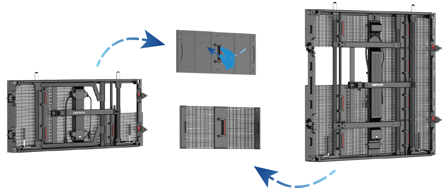 Three cabinet sizes share one module type, compatible with mesh and non-mesh options to deliver high transparency or high-contrast visuals.